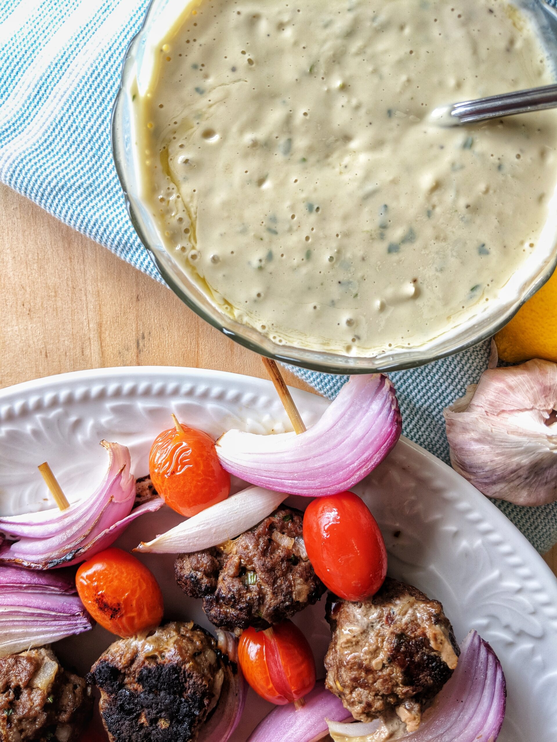 Beef Kofta Meatball Kebabs with Lemon Herb Tahini Sauce