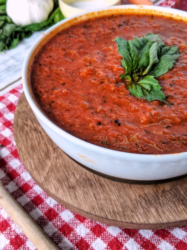 Having a tried and true tomato sauce recipe under your belt is basically a right of passage into food blogging land. Am I right?! That being said, I am longgggg overdue for getting this recipe posted. I've been tinkering with it for weeks, and it's FINALLY PERFECT! This marinara sauce is FAR from basic. With ingredients like roasted red peppers, fire roasted tomatoes and plenty of herbs and spices, this sauce puts any and all store bought pasta sauces to shame. It will make your house smell like your wining and dining in a restaurant in the heart of Little Italy or like ...real Italy.